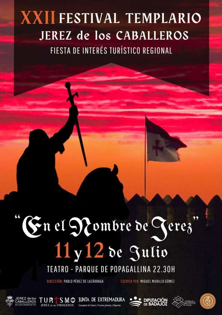 Durante los cuatro días que dura el Festival Templario, y gracias a la constante implicación de todo un pueblo y sus pedanías, la ciudad de Jerez de los Caballeros se convierte en la villa medieval que tanto esplendor alcanzó bajo el dominio de la Orden del Temple, trasladándose a una época habitada por soldados, clérigos, trovadores y músicos que durante el festival vuelven a cobrar vida por las calles y mercados. Una fiesta cargada de historias y leyendas, de recuerdos y experiencias inolvidables, con un amplio programa de actividades lúdicas y culturales, en donde la obra de teatro «En el nombre de Jerez» se convierte en una de las atracciones más destacadas al recrear el final de los caballeros del Temple. Todo ello, ubicado en un marco patrimonial excepcional, el castillo templario, que junto con sus iglesias, palacios, ermitas, conventos y un sinfín de rincones hacen de Jerez de los Caballeros un reclamo turístico de primer orden, que se completa con un bello paraje natural de dehesas de encinas y una gastronomía que conjuga tradición y vanguardia. ¡Ven y descubre la villa templaria de Xerez!